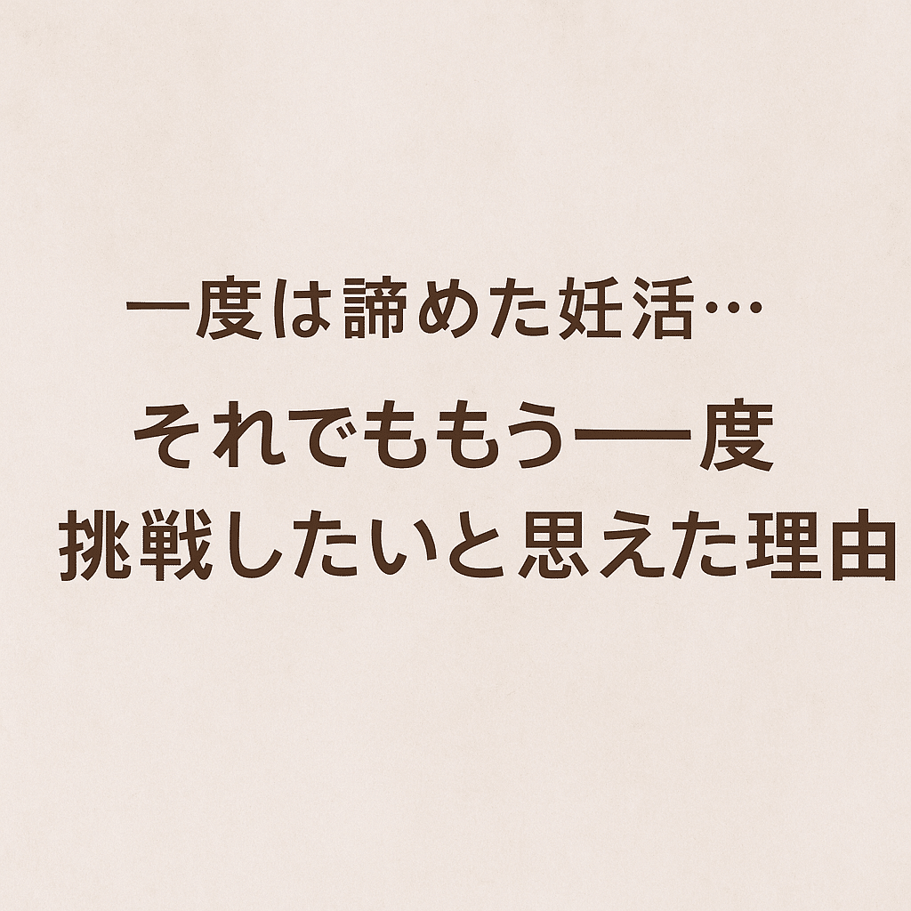 妊活を完全にやめるつもりでしたが、友人や同じ経験をした方の話を聞くうちに、「もう一度挑戦してみてもいいのでは」と思うようになりました。