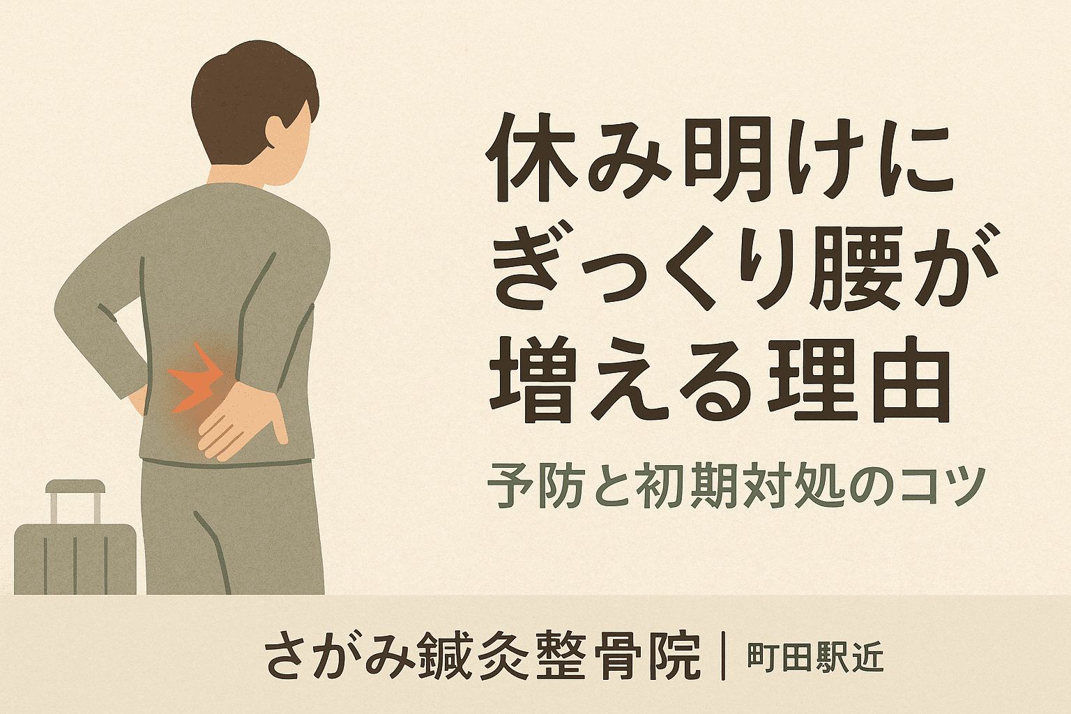 休み明けは「リズムの乱れ×運動不足×急な負荷×冷え」が重なり、ぎっくり腰の土壌が整います。