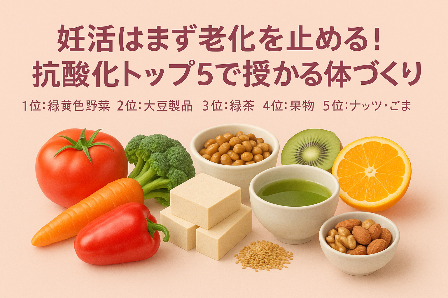 酸化は卵子・精子の質、ホルモンバランス、血流に影響します。今日からできる抗酸化食材トップ5を、過不足なく取り入れるための実践ガイドにまとめました。