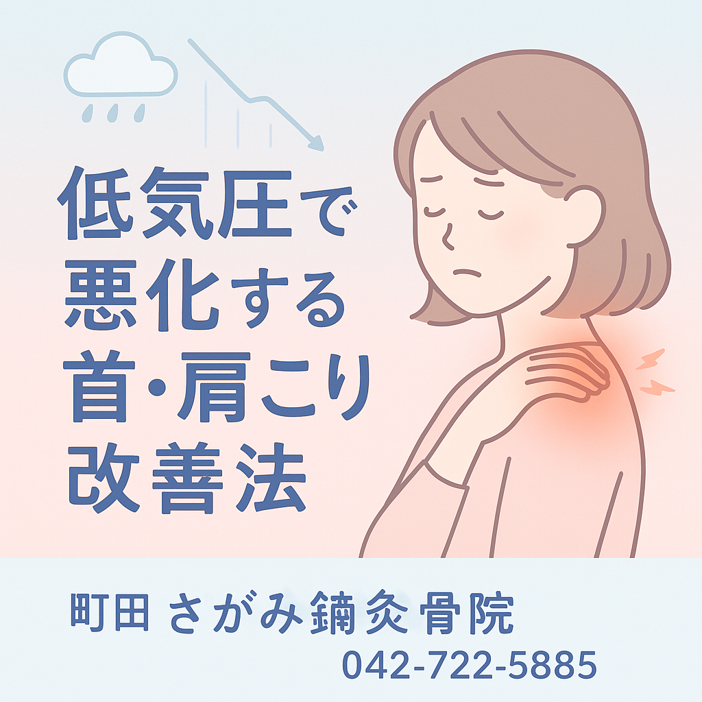 急な気圧低下は内耳(気圧センサー)が敏感に反応し、交感神経と副交感神経のバランスが崩れます。すると筋肉がこわばる・血流が低下し、首や肩の疲労物質が流れにくくなります。