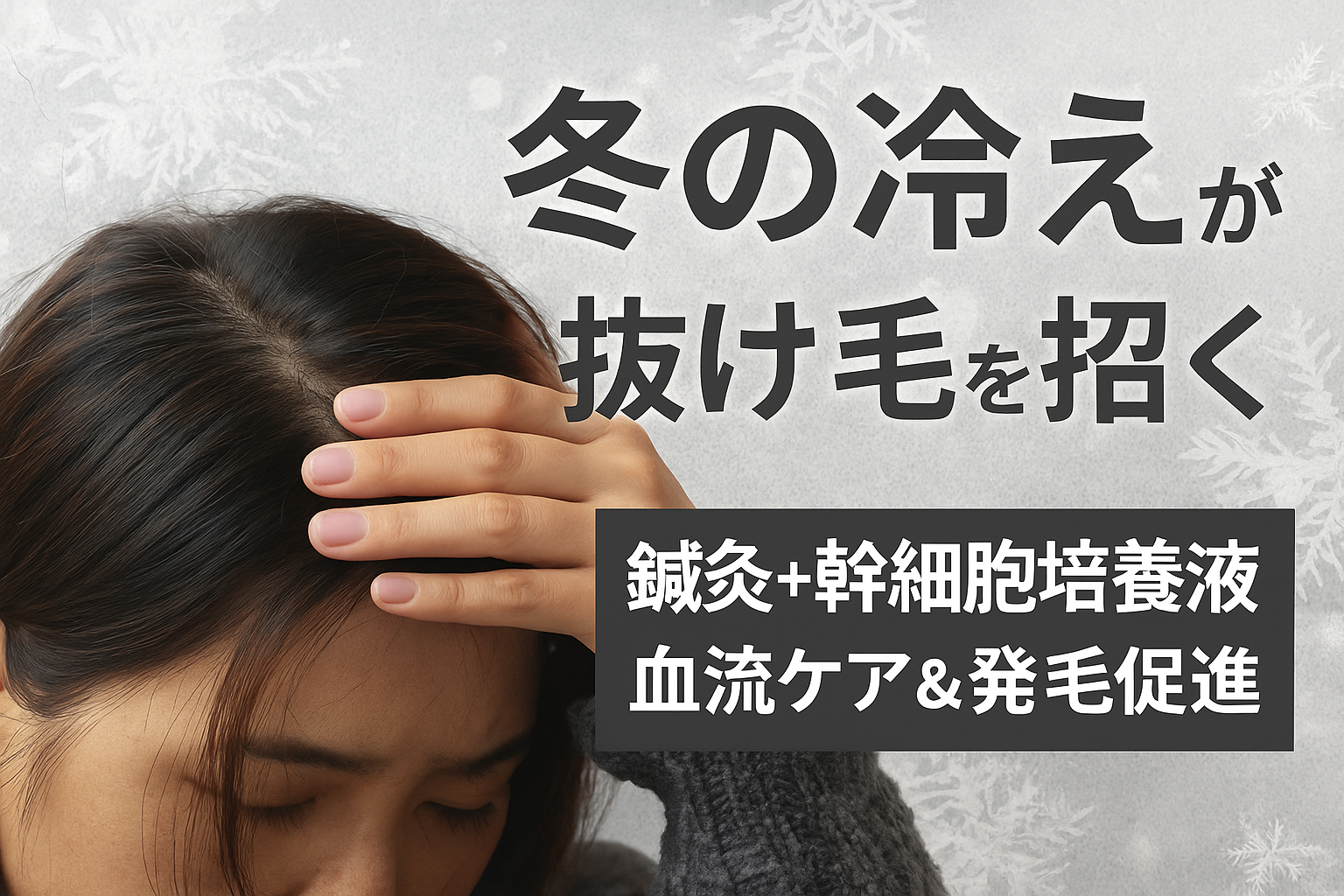 冬の寒さで毛細血管が収縮 → 頭皮の血行さらに悪化。鍼灸+幹細胞培養上清液で「抜けない土台」をつくる