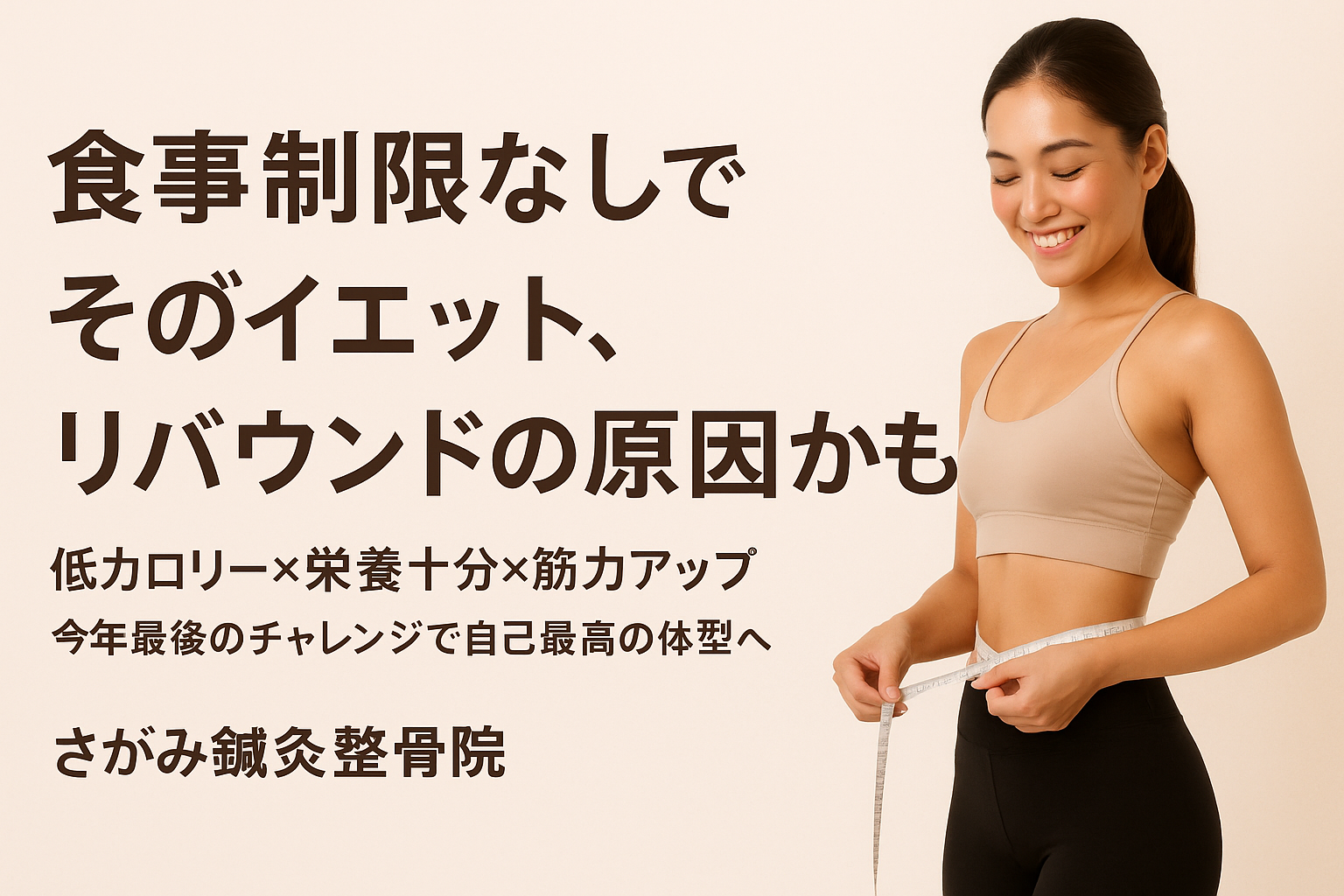 食事制限なしの甘い言葉に惑わされて、リバウンドを繰り返すのはもう終わりにしましょう。