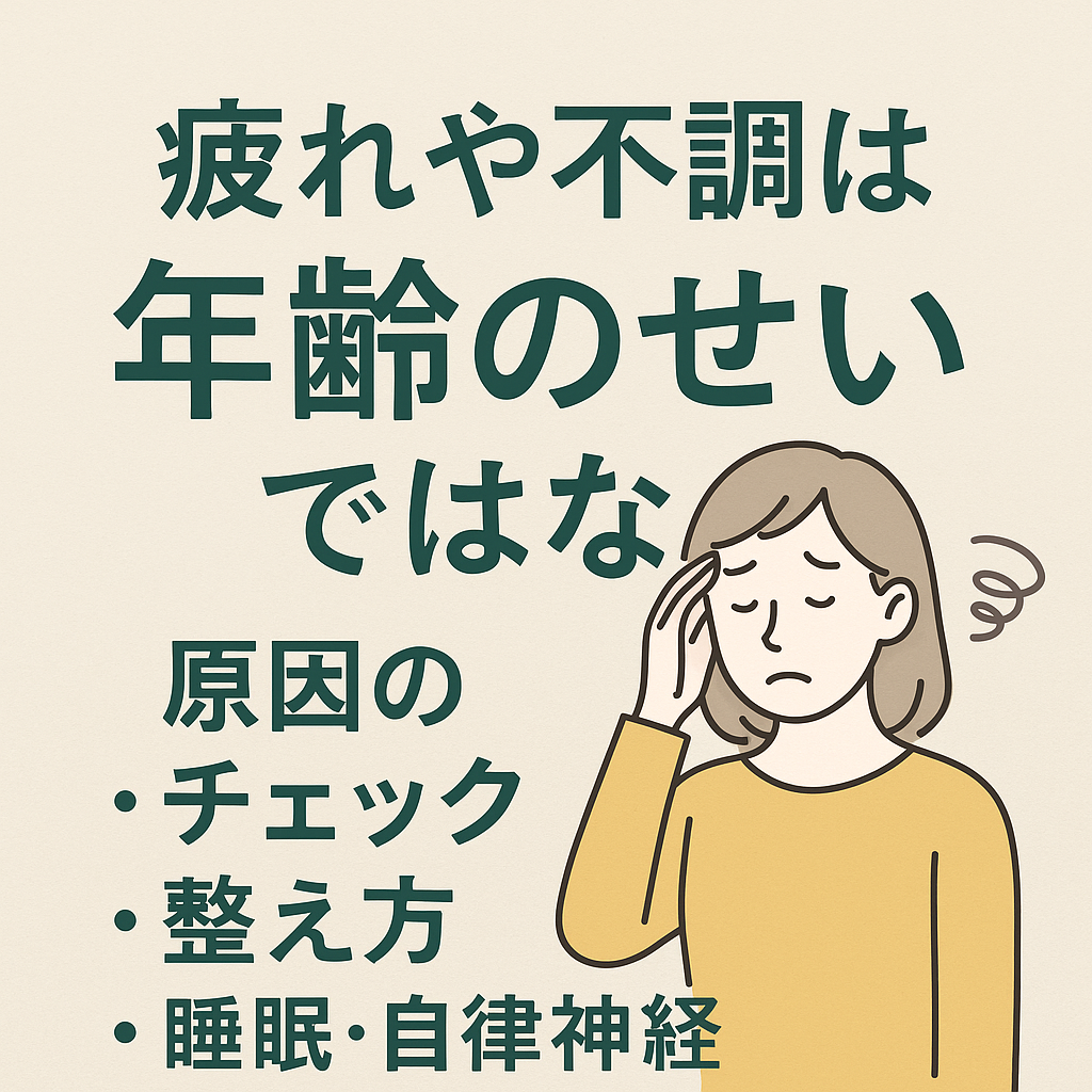 この記事では、疲れや不調を“年齢のせい”で片付けないために、原因の見える化と整え方の順番をまとめます。