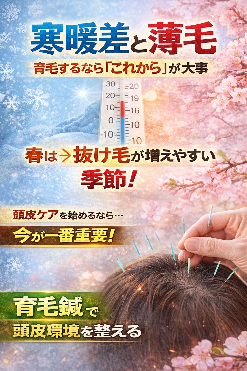 これらの要因が重なる春こそ、放置すれば老化(薄毛の進行)を一気に進めてしまいます。