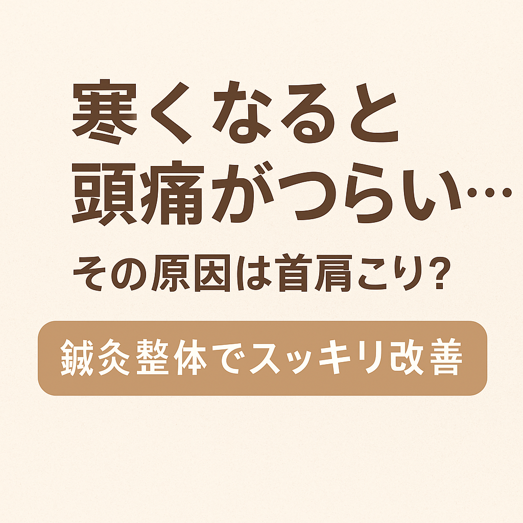 頭痛 寒くなると頭痛がつらい…その原因は首肩こり?鍼灸整体でスッキリ改善 :root{--brand:#d8b4a0;--accent:#805b4d;} body{line-height:1.9;color:#222;} .lead{background:#fff7f4;border-left:6px soli... 2025.11.08 頭痛首・肩こり